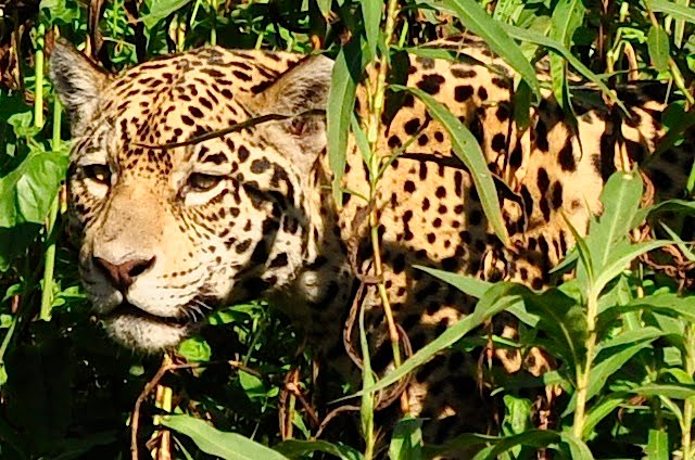Enquanto viamos esta cena percevi que estavamos sendo observados por uma onça. Desta vez uma fêmea, que estava na margem do rio como de costume. ela nos observou por alguns minutos e depois sumiu na mata.